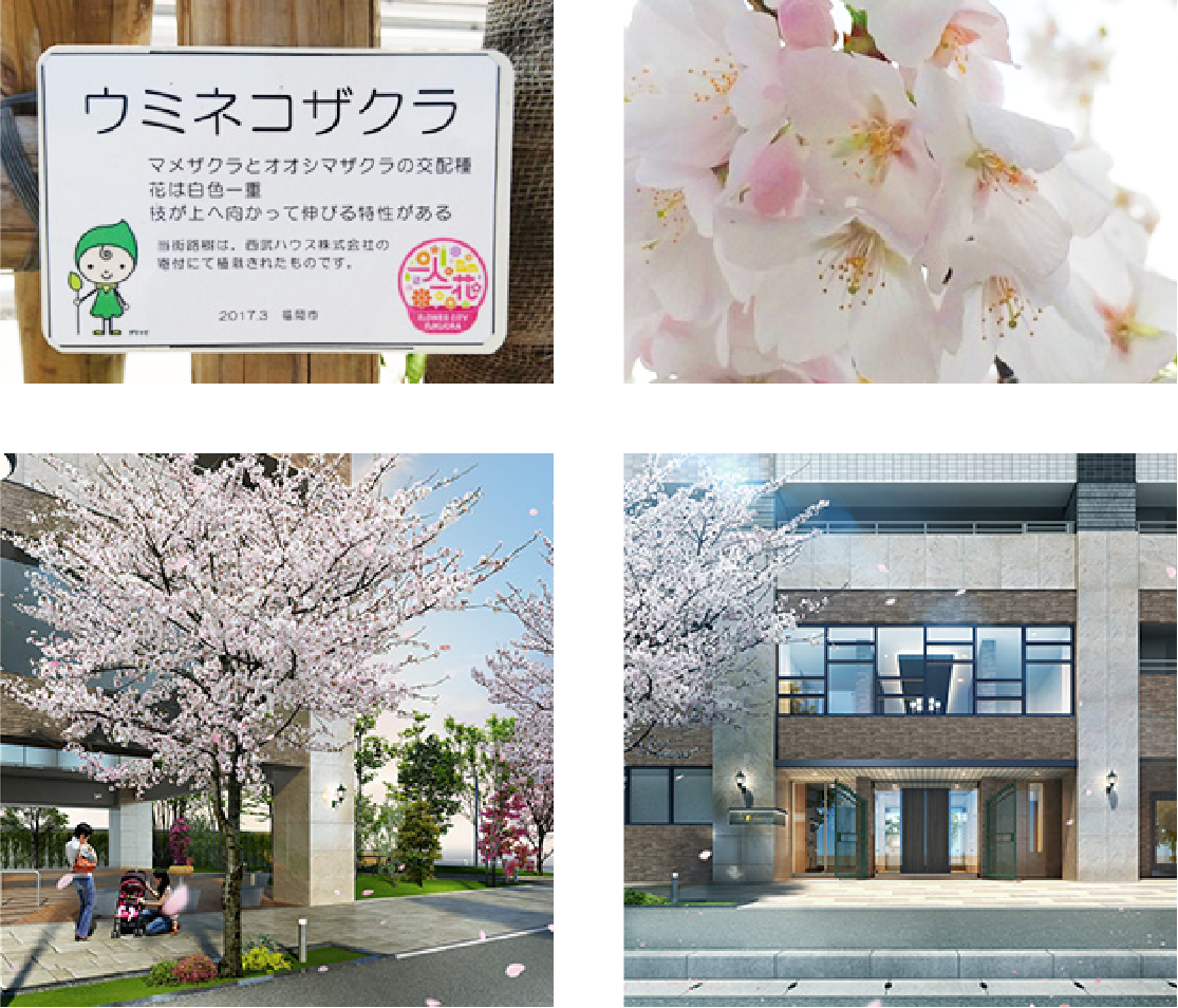 西武ハウスの本社前から舞鶴公園へと延びる道路(舞鶴港線)の街路樹としてウミネコザクラ24本、オタフクナンテン288株を福岡市に寄贈し、植樹されました。