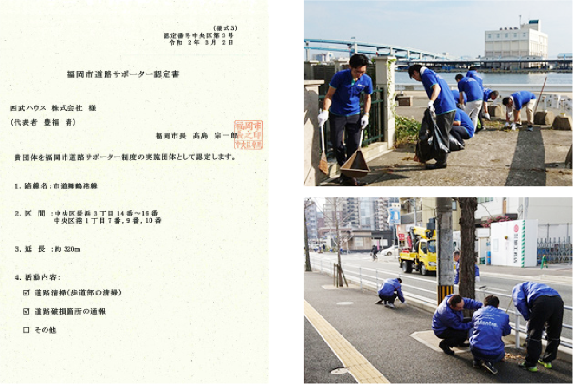 暮らしやすいまちであるために「環境」や「人」がとても重要ではないでしょうか。西武ハウスでは「福岡市より耐震性表彰を複数回受賞」、「福岡市道路サポーター制度への登録」など、住みよいまちづくりのために取り組む活動をしています。