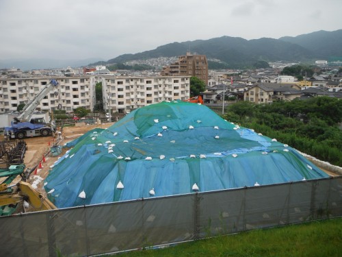 西棟の杭打設状況です(敷地内より西側を撮影)。